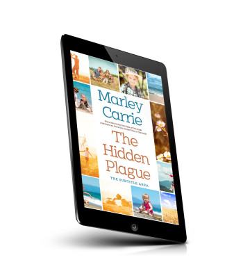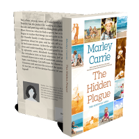 “A collage of children playing and smiling outdoors, surrounding a book cover titled "The Hidden Plague" by Marley Carrie.”