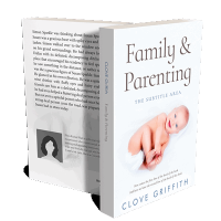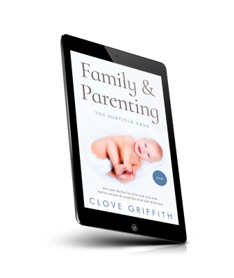 “A book cover featuring a baby lying down, smiling, with the title "Family & Parenting" at the top and the author's name at the bottom.”