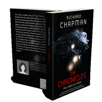 “A robotic face intertwined with glowing wires is featured on a dark book cover.”