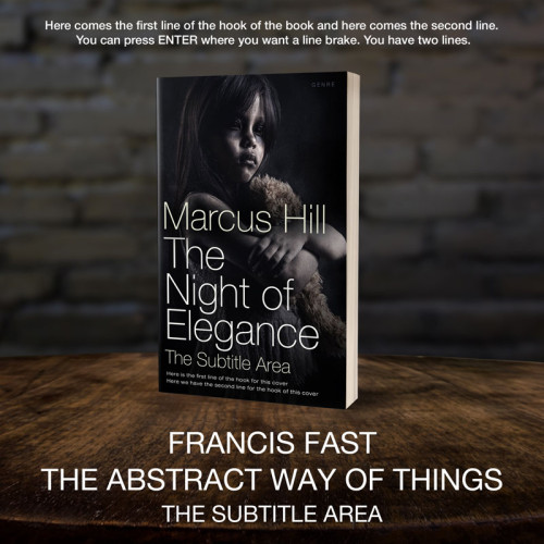 This book cover has 3 lines for the title, 1 line for the subtitle, 1 line for the author, 2 lines for the hook, and finally 1 line for the genre.