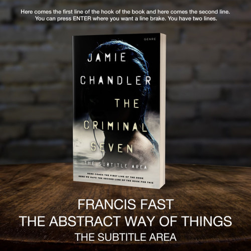 This book cover has 3 lines for the title, 1 line for the subtitle, 2 lines for the author, 2 lines for the hook, and finally 1 line for the genre.