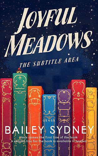 This book cover has 2 lines for the title, 1 line for the subtitle, 1 line for the author, 2 lines for the hook, and finally 1 line for the genre.