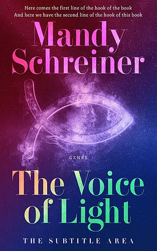 This book cover has 2 lines for the title, 1 line for the subtitle, 2 lines for the author, 2 lines for the hook, and finally 1 line for the genre.