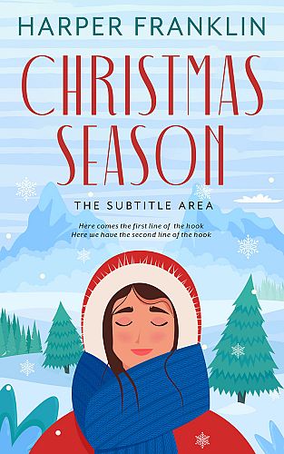 Other keywords revelant to this premade cover are season, peaceful, christmas, trees, cold, mountains, cozy, festive, warmth, scarf, snowflakes, snowfall, evergreen, red coat, blue scarf.