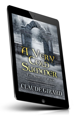 “A stone archway leads to a foggy, snow-covered landscape, with a moonlit sky and bare trees in the background.”