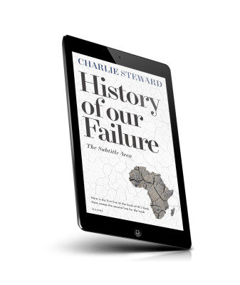 “A book cover with a cracked map of Africa and a white background. The title is "History of our Failure."”