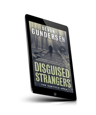 “A shadowy figure stands in a foggy forest, with tall trees creating an eerie atmosphere. The book cover has a mysterious and suspenseful design.”