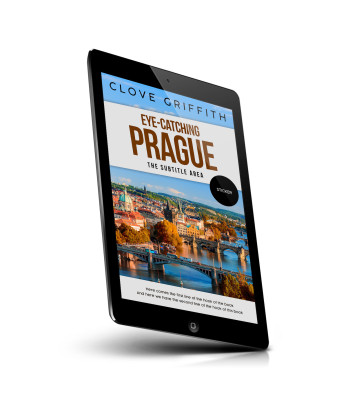 “An autumn view of Prague with historic buildings, a river, and prominent bridges under a clear sky.”