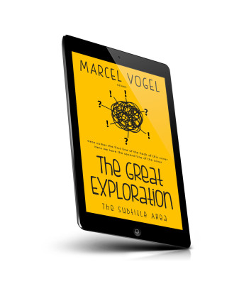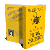 “Yellow book cover with tangled scribble, question marks, exclamation points, and bold title "The Great Exploration" below.”