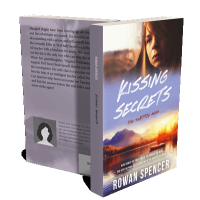 “Two women face each other, with a serene mountain lake scene at sunset below. The title is in bold, white script.”