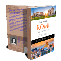“A book cover featuring Rome with images of historical landmarks and text in the middle.”