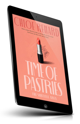“Lipstick on pink background with title "Time of Pastries."”