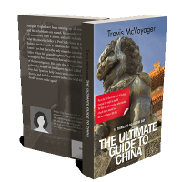 “A stone lion statue stands in front of an ornately decorated traditional Chinese building with colorful roof tiles.”