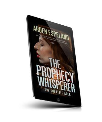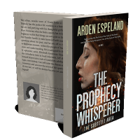 “A side profile of a woman with red hair, set against a dark background with glowing specks. The title "The Prophecy Whisperer" is prominent.”