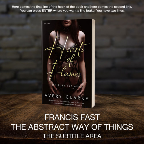 This book cover has 3 lines for the title, 1 line for the subtitle, 1 line for the author, 2 lines for the hook, and finally 1 line for the genre.