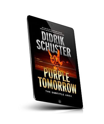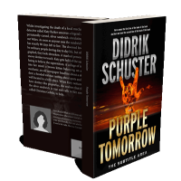 “A book cover featuring a hand making a rock gesture in flames, with the title "Purple Tomorrow" in large, bold text.”
