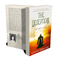 “A figure in a green robe stands in a misty autumn landscape, arms outstretched. The title "The Deception" is prominently displayed.”
