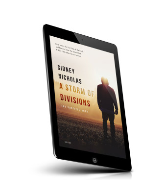 “A person in a hoodie stands in a sunlit field with fog, with text overlaid on the image indicating a book cover design.”