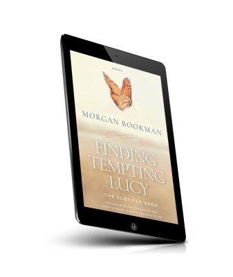 “A butterfly hovers above soft-focus text on a minimalist book cover.”