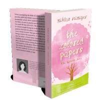 “A pink and green book cover with a simple tree illustration and whimsical font. Flowers adorn the background.”