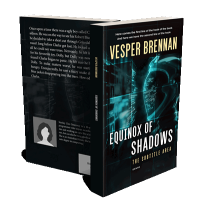 “A futuristic-themed book cover with a digital and shadowy aesthetic, featuring a helmeted figure and neon blue elements.”