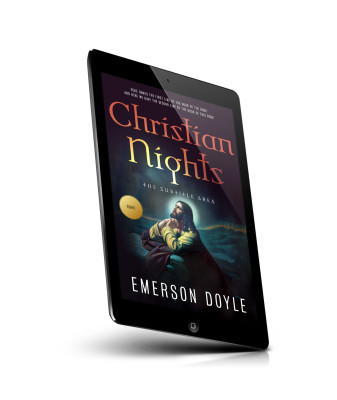 “A book cover featuring an illustration of Jesus praying, with a dark, mystical background and the title "Christian Nights."”
