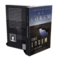 This book cover has 3 lines for the title, 2 lines for the author, 2 lines for the hook, and finally 1 line for the genre.