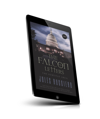 “The image shows the illuminated U.S. Capitol building at night with a book cover design overlay featuring the title "The Falcon Letters."”