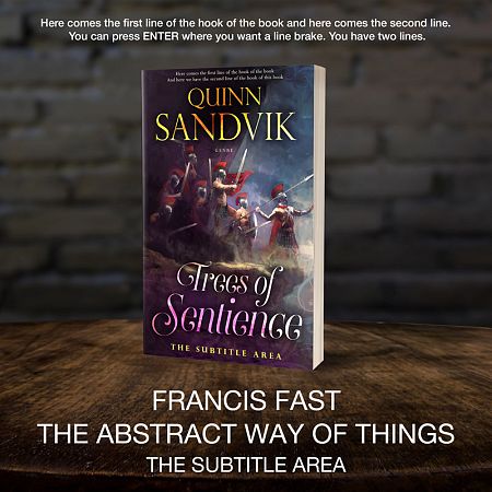This book cover has 2 lines for the title, 1 line for the subtitle, 2 lines for the author, 2 lines for the hook, and finally 1 line for the genre.
