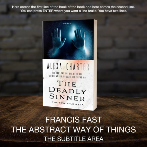 This book cover has 3 lines for the title, 1 line for the subtitle, 1 line for the author, 2 lines for the hook, and finally 1 line for the genre.