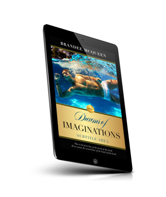 “A man is swimming underwater, wearing white swim trunks, on a book cover titled "Dreams of Imaginations".”