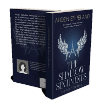 “A navy blue book cover featuring ornate, wing-like diamond designs and elegant typography.”