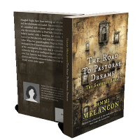 “A rustic book cover with old windows and a weathered facade, featuring the title "The Road to Pastoral Dreams" and author Tammi Melancon.”