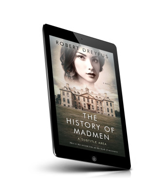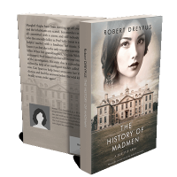 “A grayscale portrait of a woman above an old mansion on a book cover.”