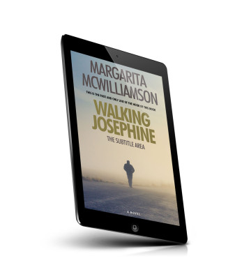 “A lone figure walks down a foggy path in an open landscape, with text above and around them.”