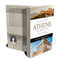 “A picturesque book cover featuring the Parthenon, a sky view of Athens, and the title "Beautiful Athens."”