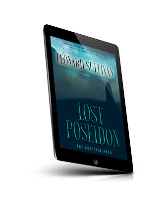 “Moody seascape with dark, silhouetted figure against an ethereal blue-green sky, featuring prominent text above.”