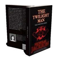 “A book cover featuring the title "The Twilight Man", with a bold red and black design, including an illustration of two armored figures.”