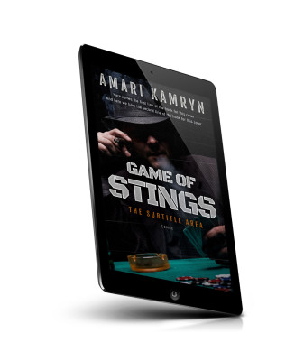 “A man in a hat smokes while holding cards at a poker table, with the title "Game of Stings" and subtitle in bold text below.”