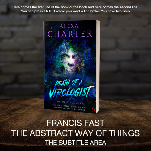 This book cover has 2 lines for the title, 1 line for the subtitle, 2 lines for the author, 2 lines for the hook, and finally 1 line for the genre.