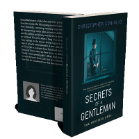 “A man in a top hat stands by a window in a dimly lit room. The cover is dark with elegant typography.”