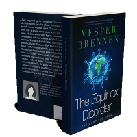 “A glowing virus-like structure envelops a map of the world against a dark background.”
