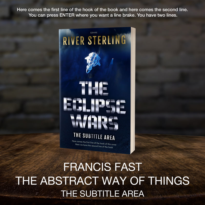 This book cover has 3 lines for the title, 1 line for the subtitle, 1 line for the author, 2 lines for the hook, and finally 1 line for the genre.