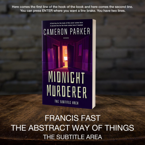 This book cover has 2 lines for the title, 1 line for the subtitle, 1 line for the author, 2 lines for the hook, and finally 1 line for the genre.