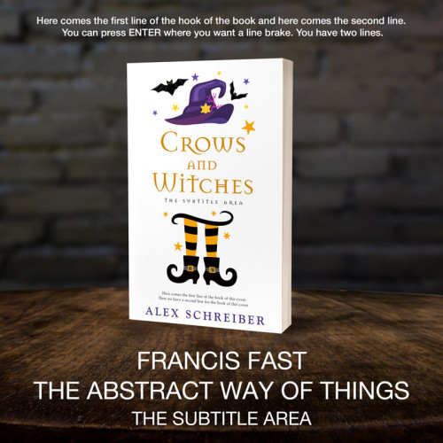 Tags: witch, hat, bats, stars, magic, boots, striped legs, halloween, purple, orange, costume, spooky, night, fantasy, enchanted, dress-up, whimsical, black, mysterious, decoration, premade cover, book cover design, self-publishing, ebook cover, print ready