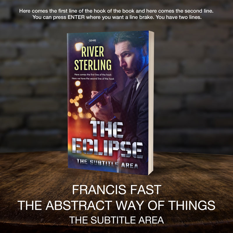 This book cover has 2 lines for the title, 1 line for the subtitle, 2 lines for the author, 2 lines for the hook, and finally 1 line for the genre.