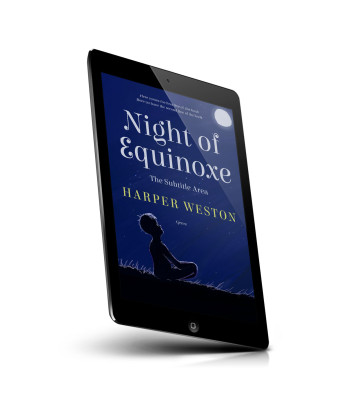 “A person sits in a field gazing at the full moon in a starry night sky, under the title "Night of Equinoxe."”