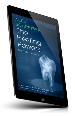“A book cover with a tooth illustration on a blue background, featuring geometric patterns.”