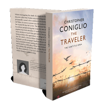 “A sunset backdrop with birds flying above barbed wire. A gold seal indicates a genre.”