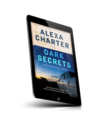 “A car by a field at sunset, with a dramatic title emphasizing "Dark Secrets" in bold blue text.”